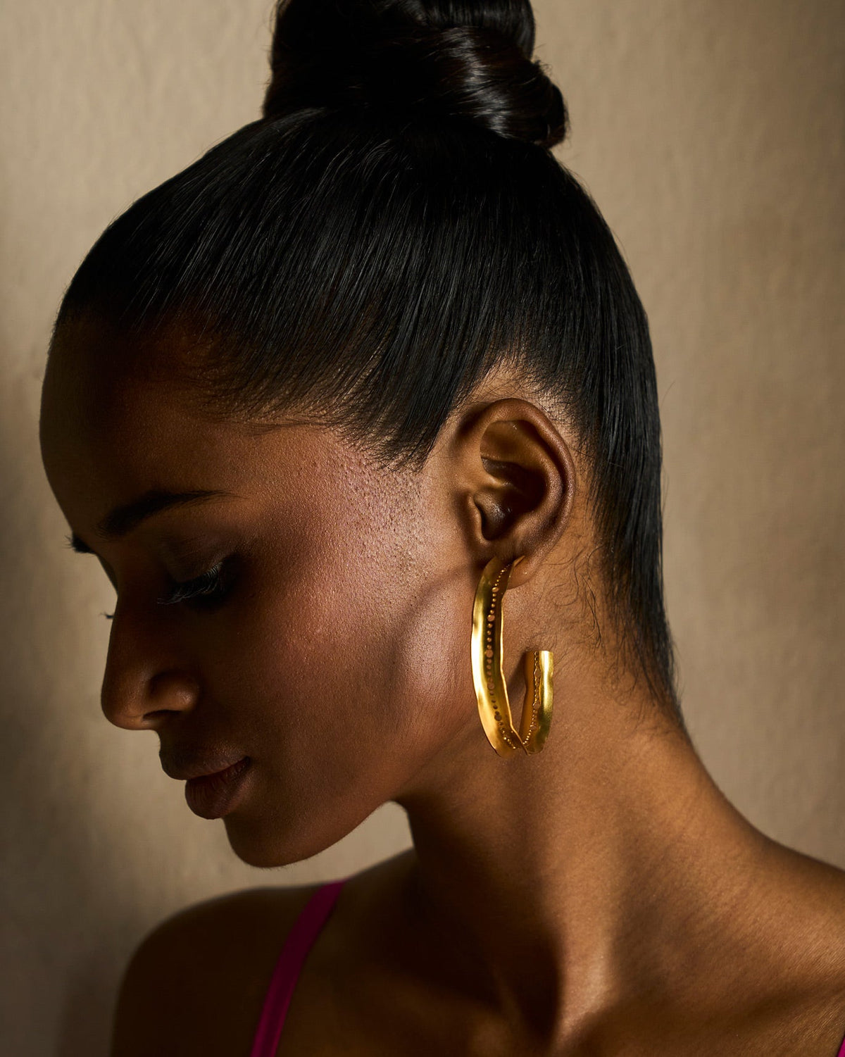 Each piece of Nicobar's Boondi earrings is unique and beautiful. It is handcrafted in brass, plated in gold. Tiny boondi like details on the earrings add to the beauty of the design.