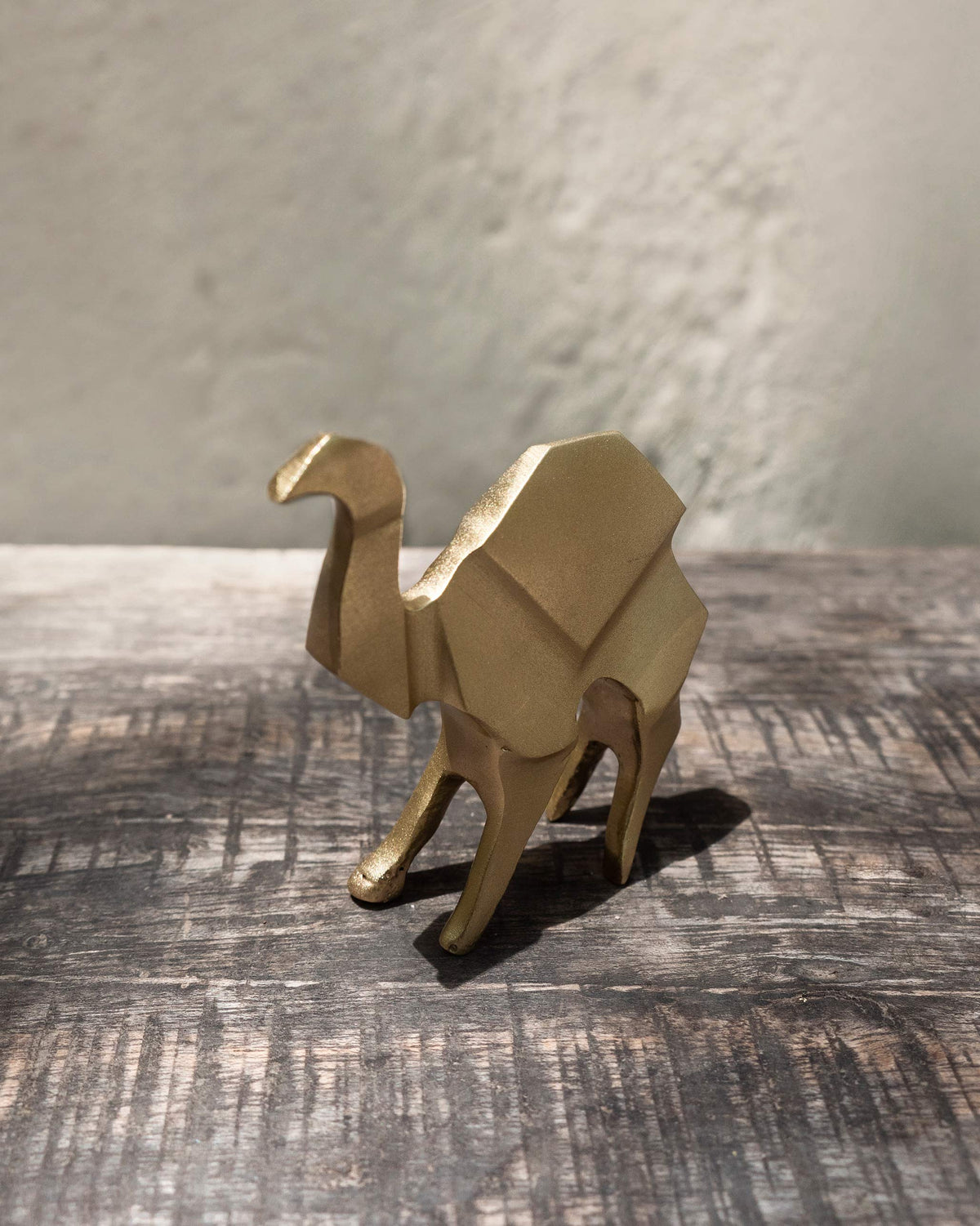 • Inspired by the motifs on the clothing of the Banjara community, this is an origami-inspired camel that is cast in brass