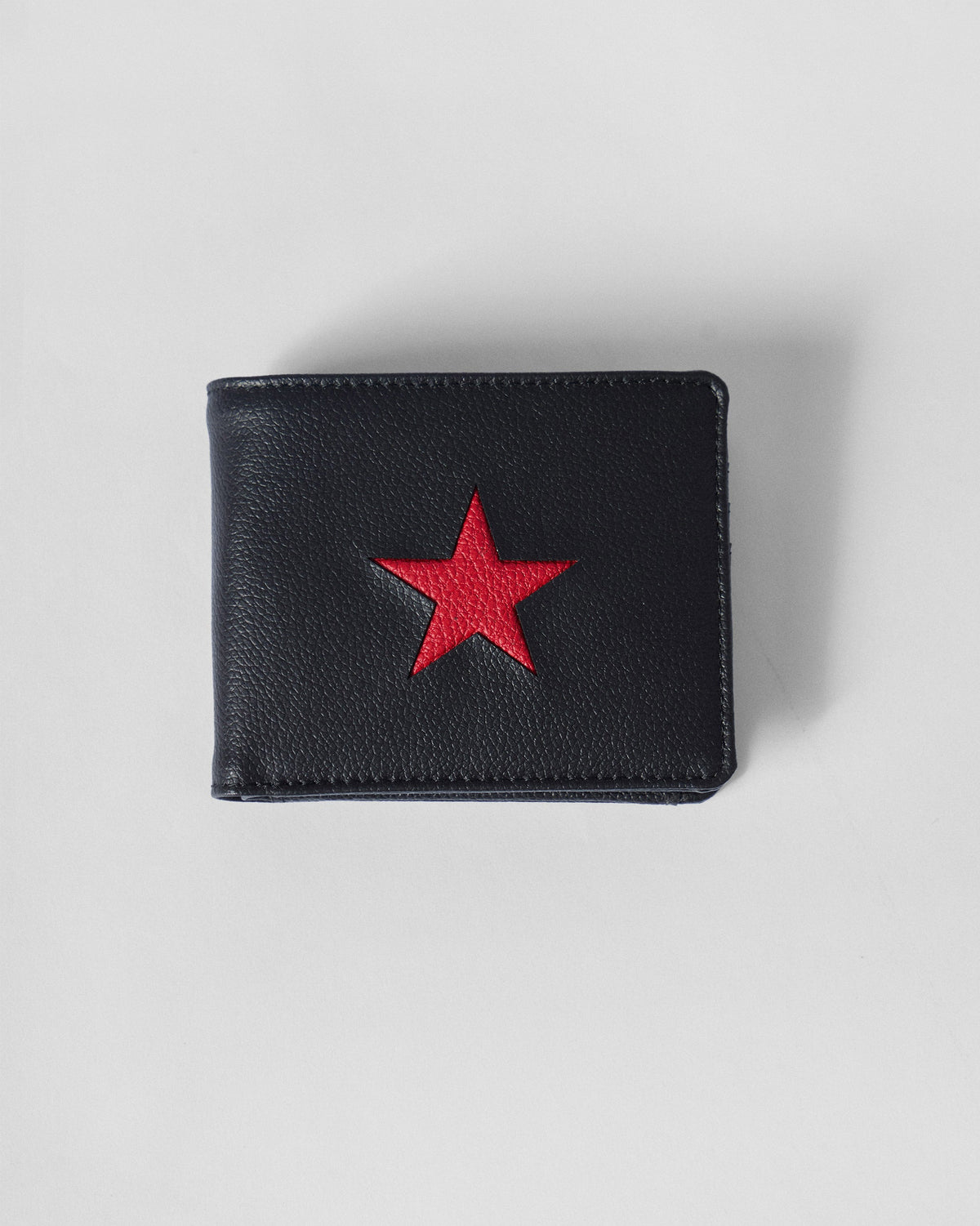 • A classic, reimagined with a bold twist. The Bi-Fold Wallet arrives in deep black, marked by a striking red star.