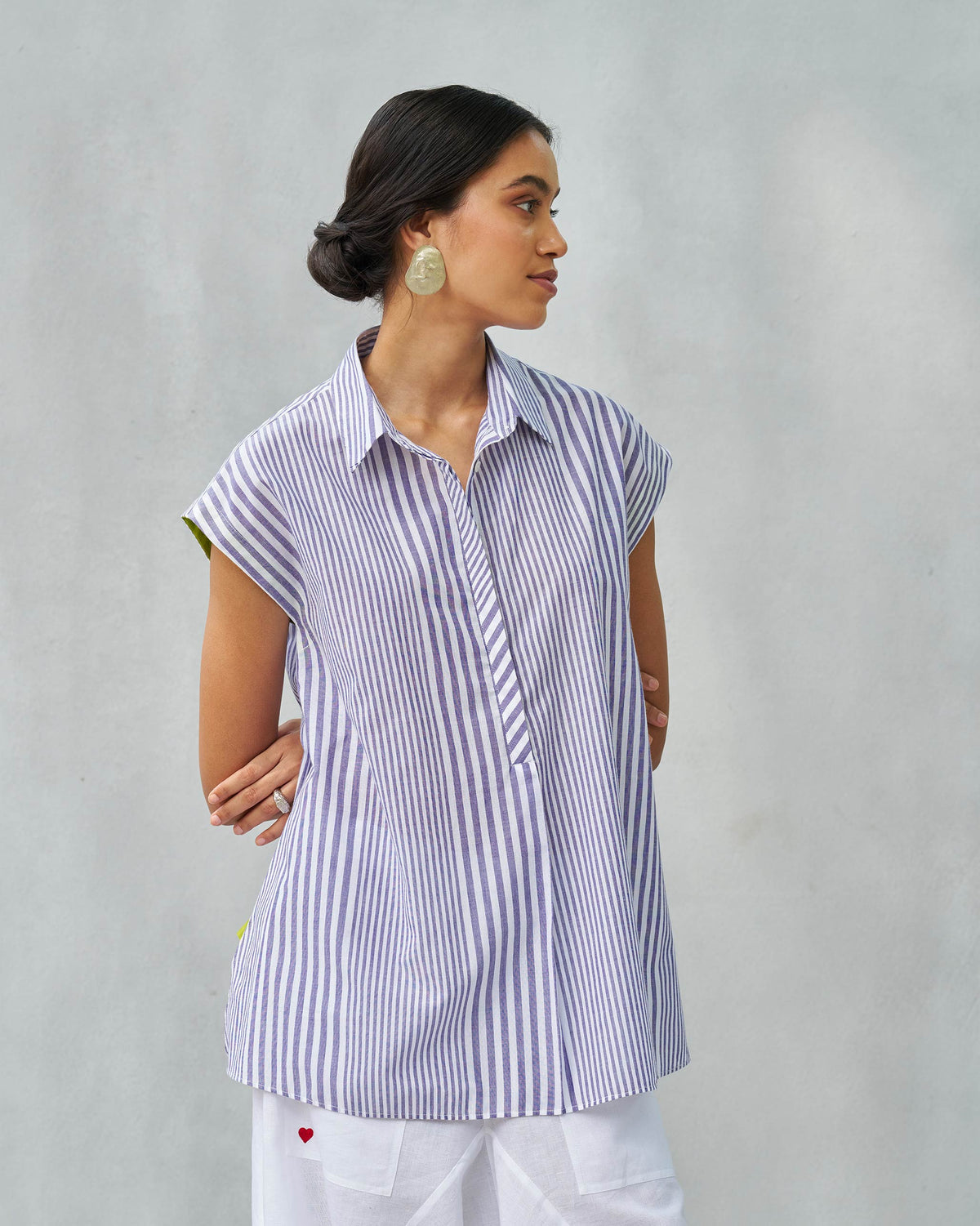 The Daisy Top’s easy silhouette makes it easy to pair with every other piece in your closet with its eye-catching design and purple and white palette. Whether it's a day at the office or a casual brunch with your friends, you’ll find yourself picking it for every outing.