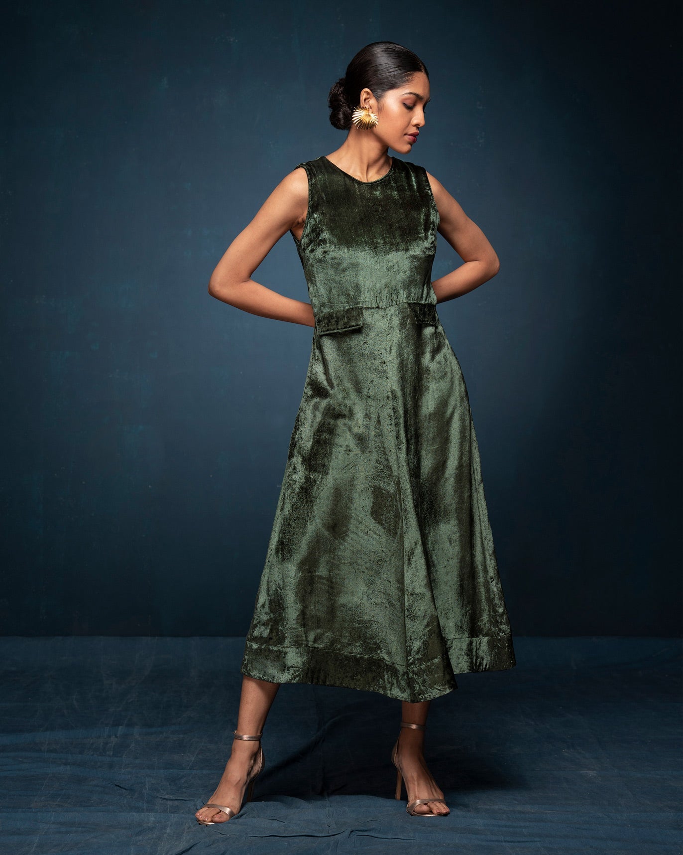 Nothing speaks festive better than a luxe, jewel-toned viscose velvet piece: slip into this radiating dart style dress and keep warm + on-style for every occasion