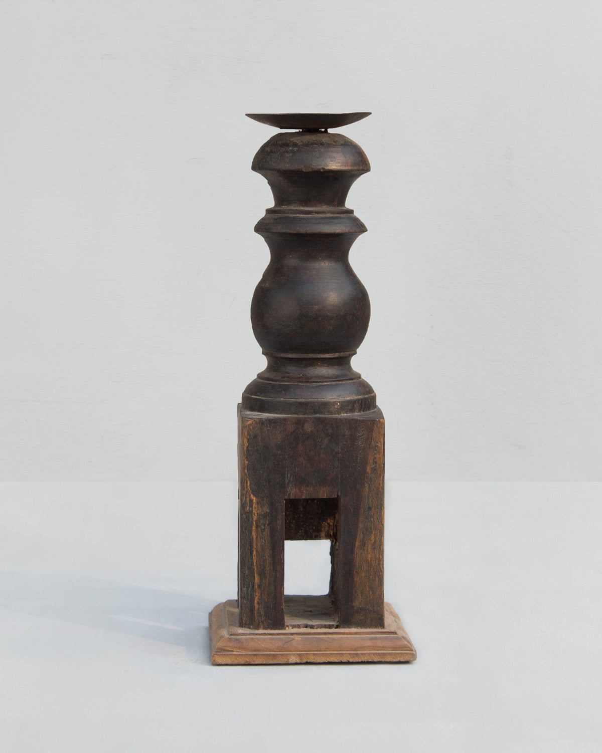 • Featuring an iron disc on the top, our wooden candle holders are made using the legs of old beds (chaarpais)