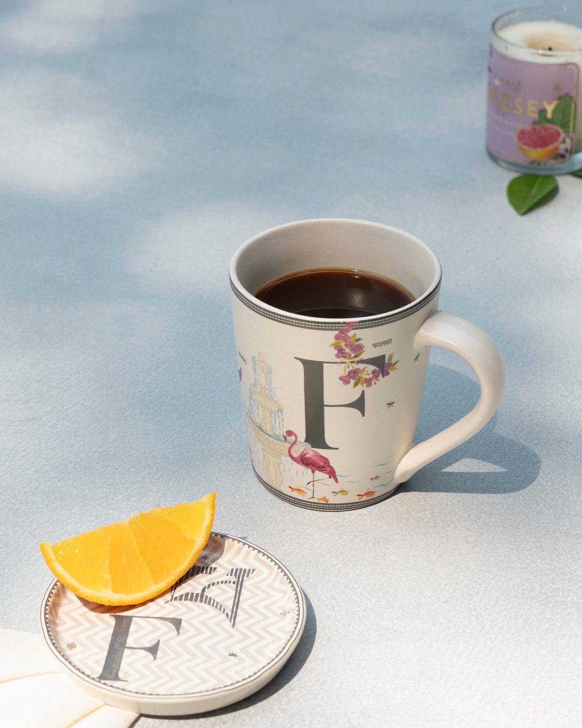 The F Alphabet Set comes with our beloved Alphabet mug and Akshar Coaster; personalised and thoughtful, these are a real love letter to India's regional dialect and scripts