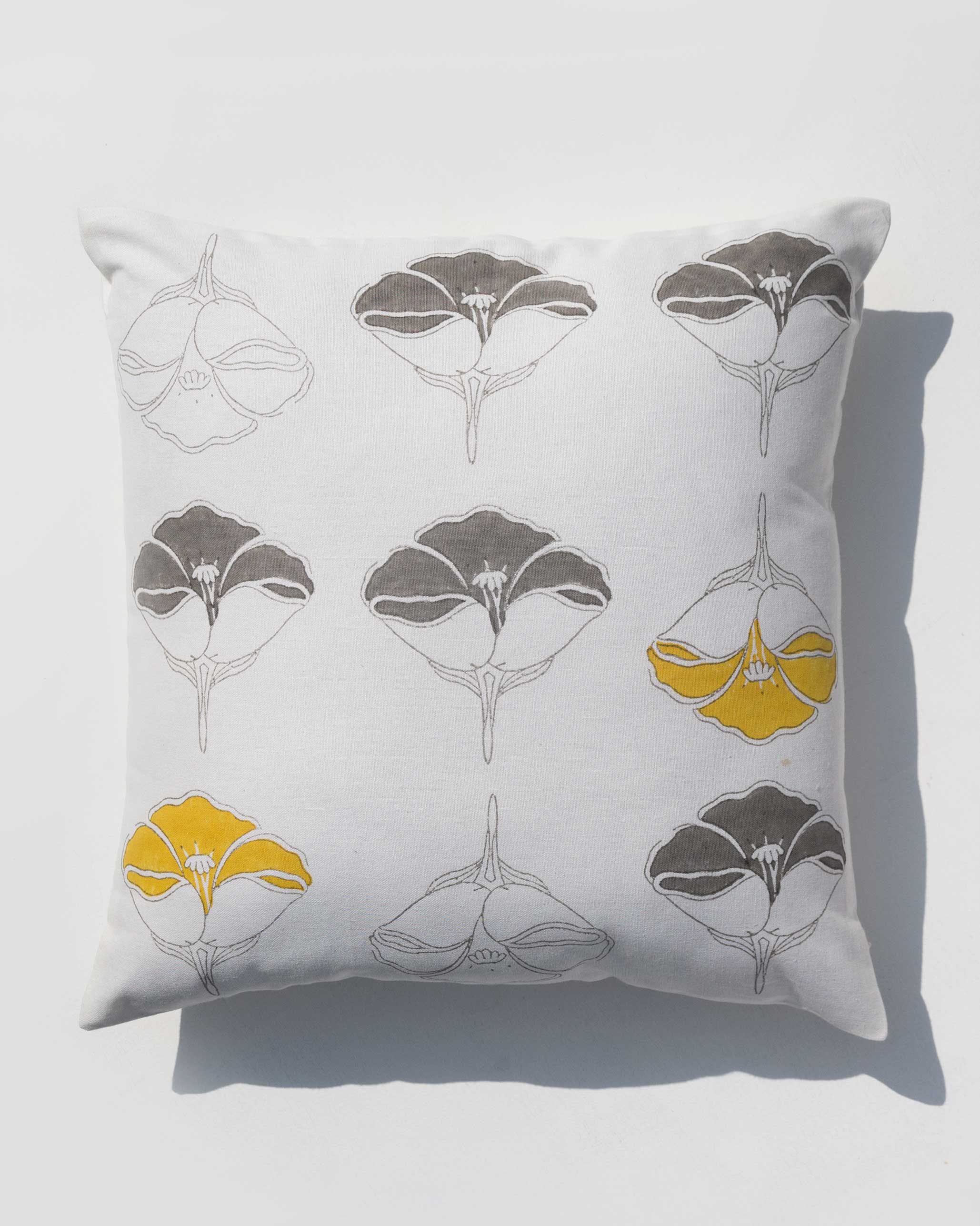 Perfect to dress up a bed, a rug-kitted corner, or a diwan, this ivory cushion cover features leaves and flowers with the slightest bit of sunshine yellow