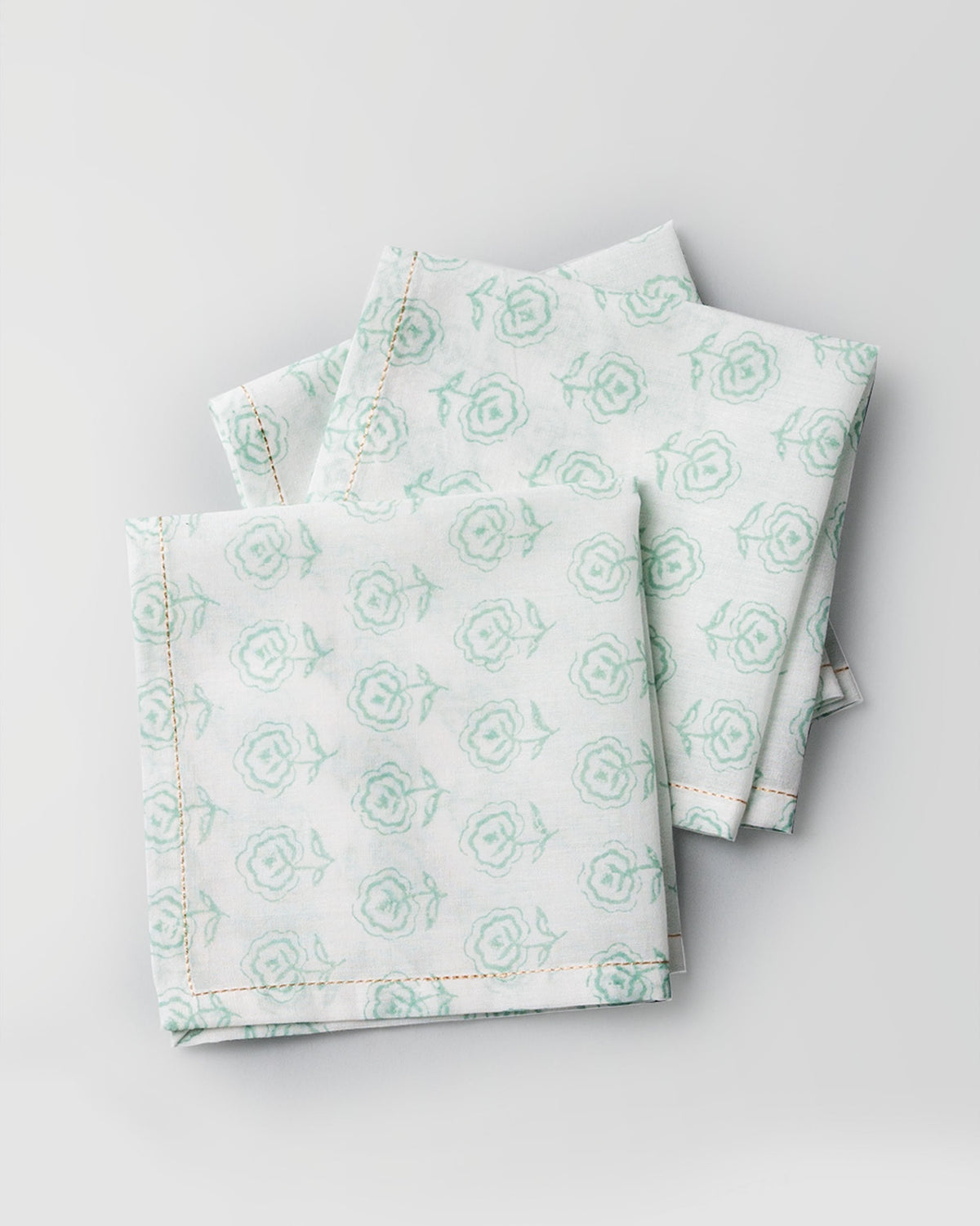• These cocktails napkins in pale jade and ivory cotton come with dull orange edging, and pair well summery cocktails that are light on the palate