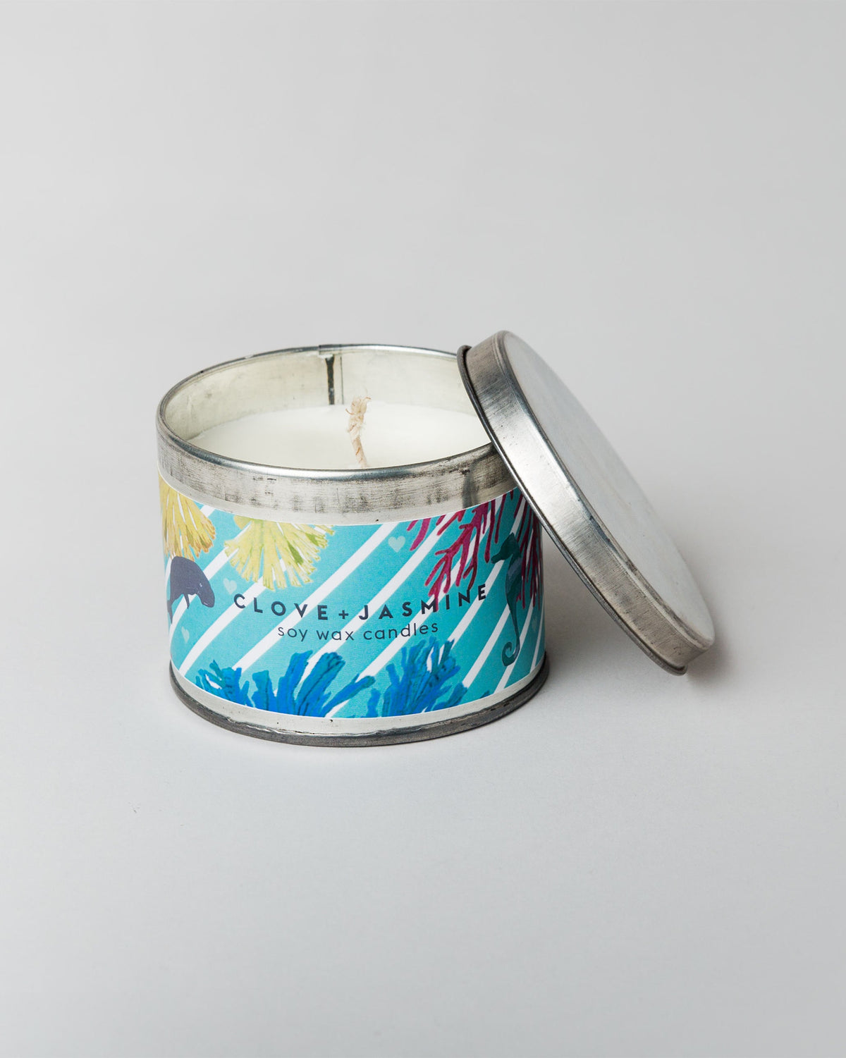 The tin container holds soy wax which is longer lasting and cleaner burning than petroleum-based paraffin candles, and is less likely to trigger allergies