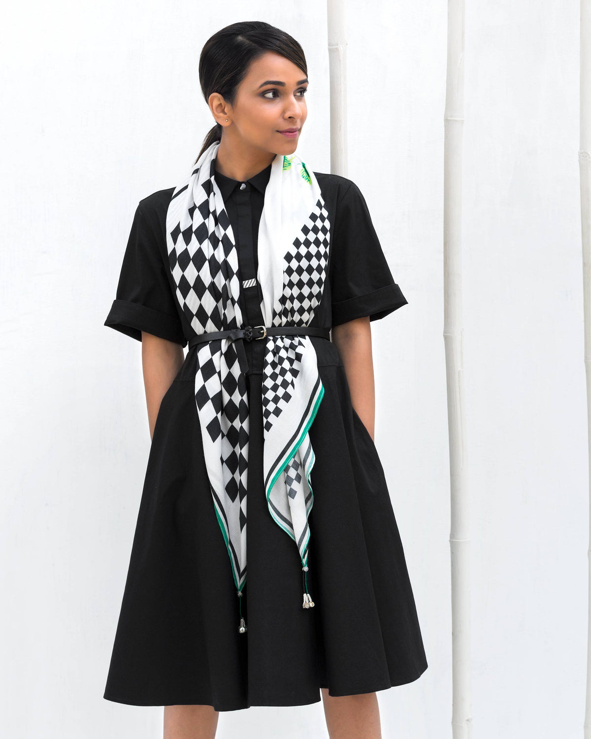 • Inspired by Geoffrey Bawa's contemporary architecture, this bold checkered square scarf is perfect to keep the sun at bay