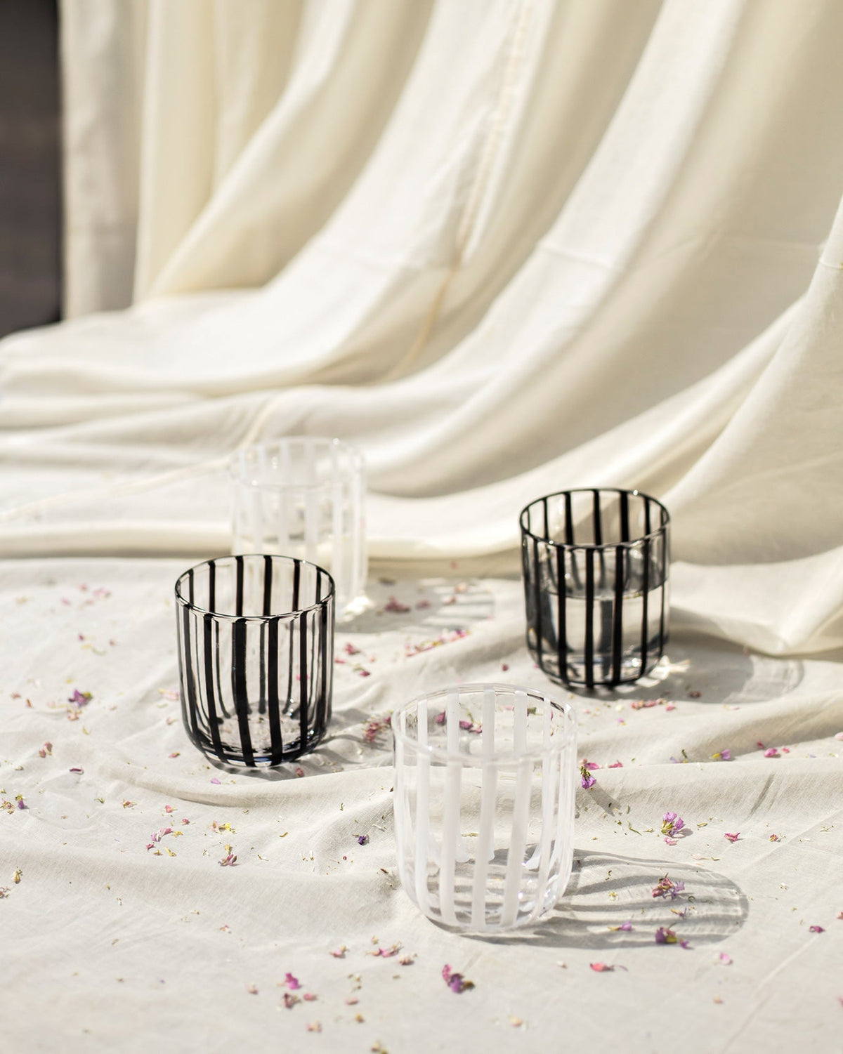 • A set of four striped glasses with just the right weight and a comfortable hold