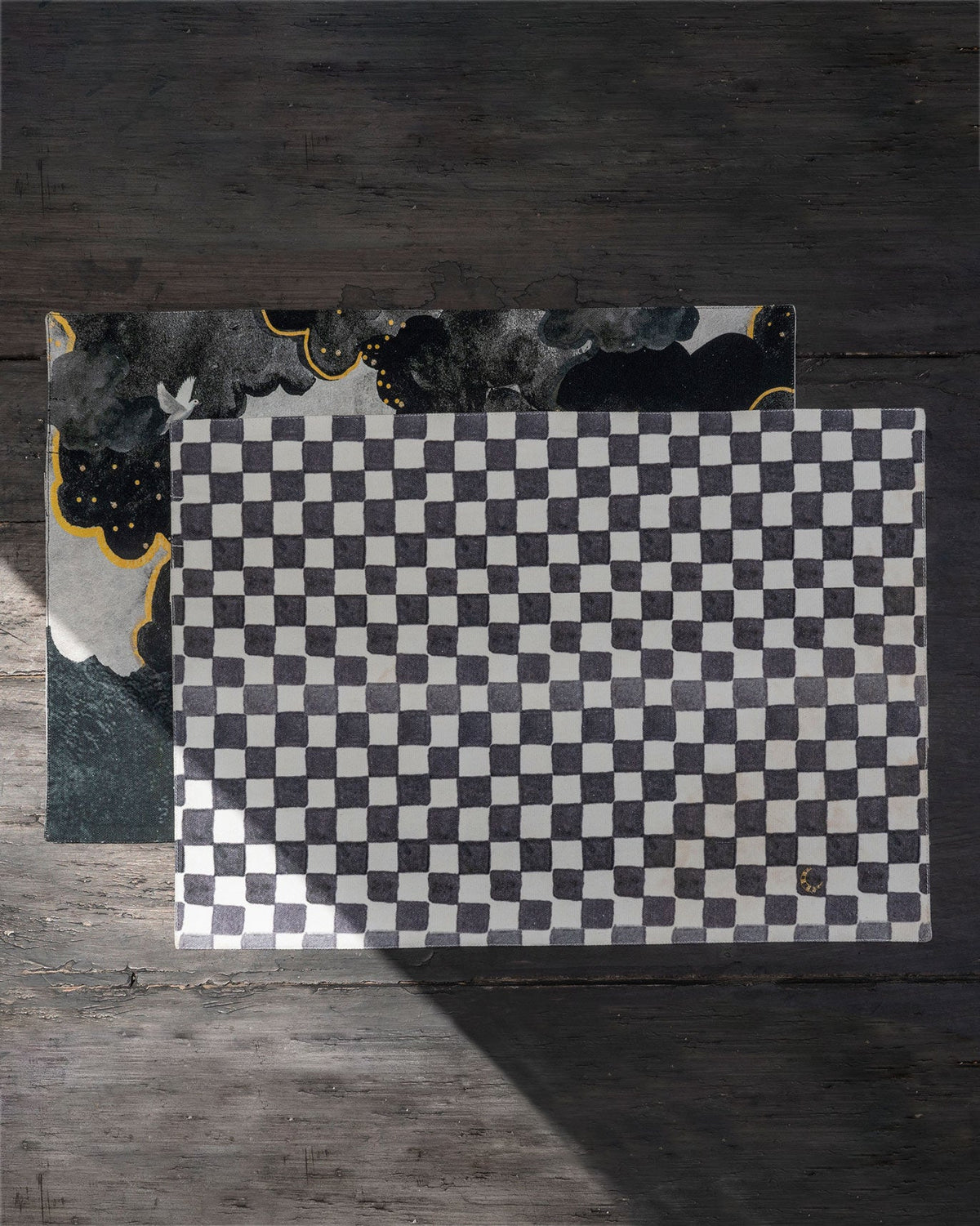 • Your table is your canvas! Tie all sorts of table settings together with these dramatic, digi-printed placemats: gold details, cloud mist, and white birds soaring the sky