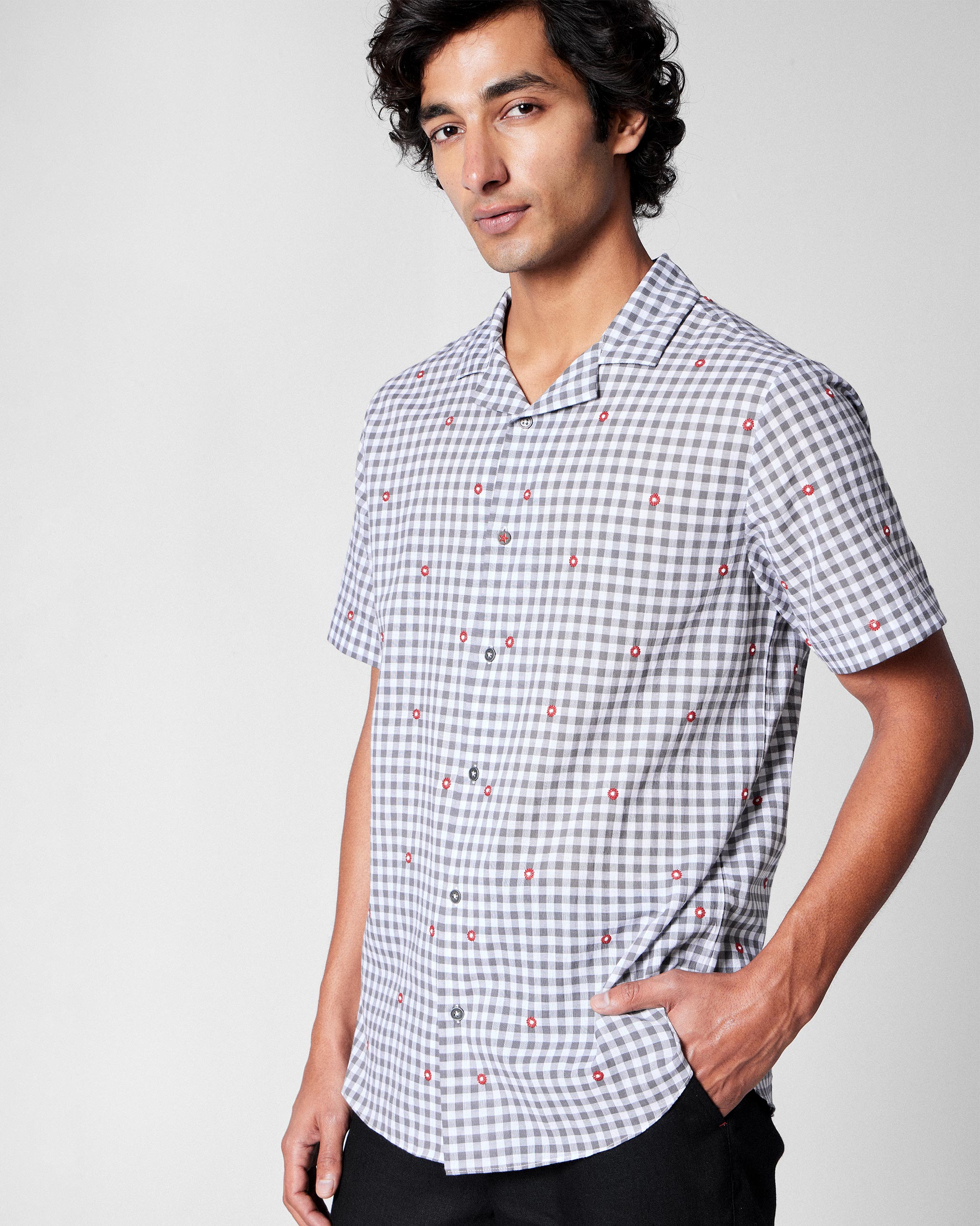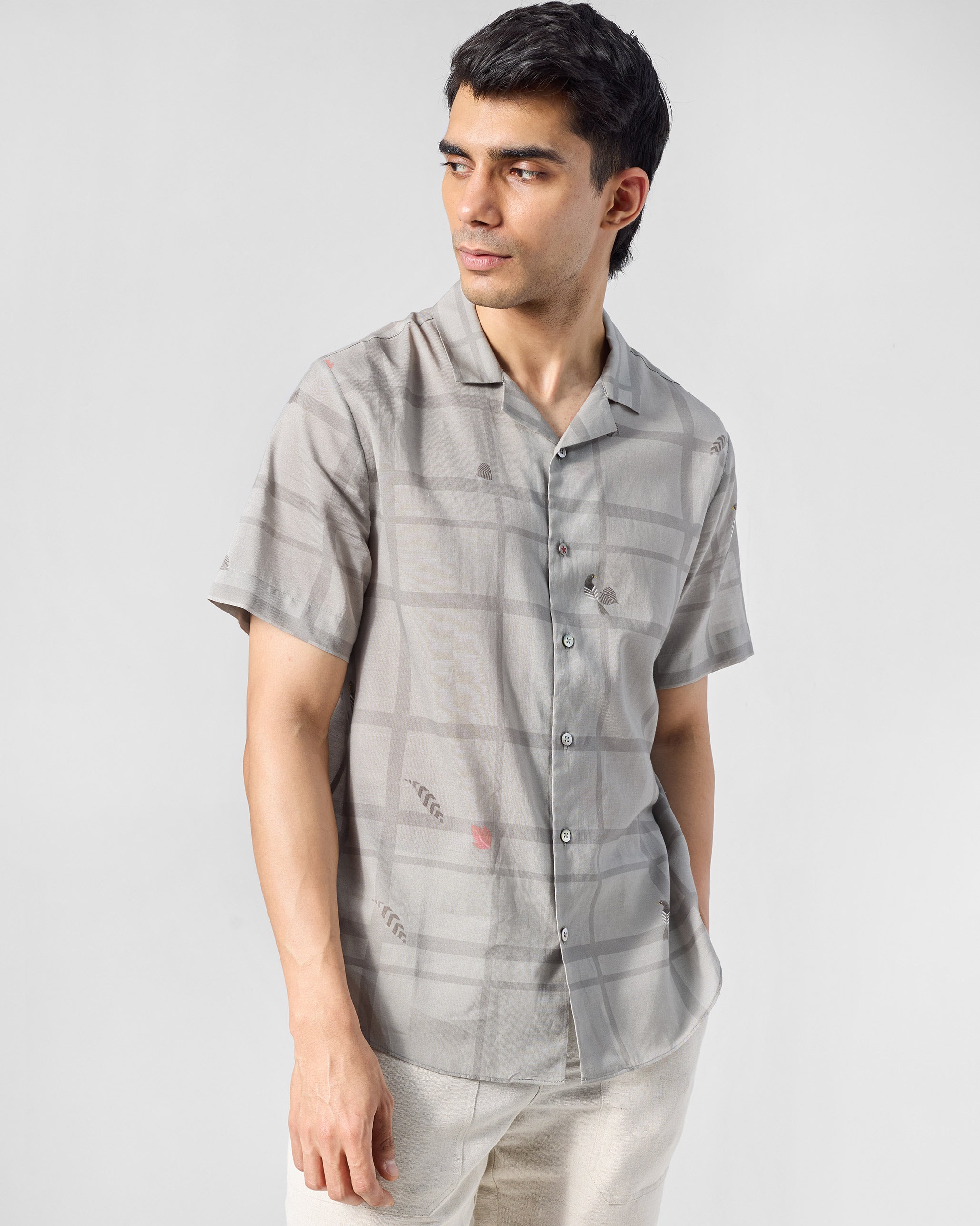 • Finished with airy voile comfort and precise detailing, this shirt balances colour, print, and Nicobar character in one effortless piece.