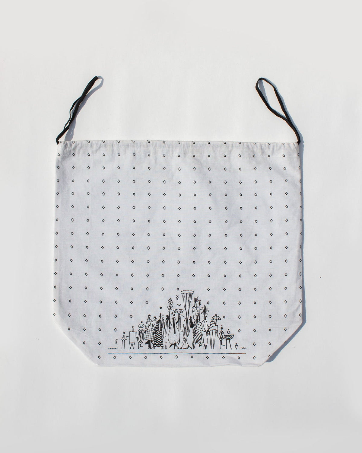 With a twill tape closure, it's handy enough to swing along on your shoulder or stuff into a larger tote