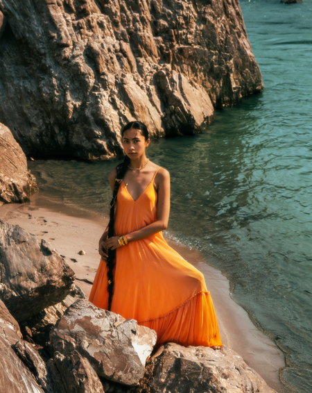 A jacket that works thrice as hard as an overlay and a dress, this one's a travel staple. In a cool olive that works equally well for night and day, the Nomad Jacket is the essential your suitcase needs. Blending the calm of the desert with the wild spirit of the jungle, Safar is a collection designed for exploration—capturing the journey within, before it even begins.