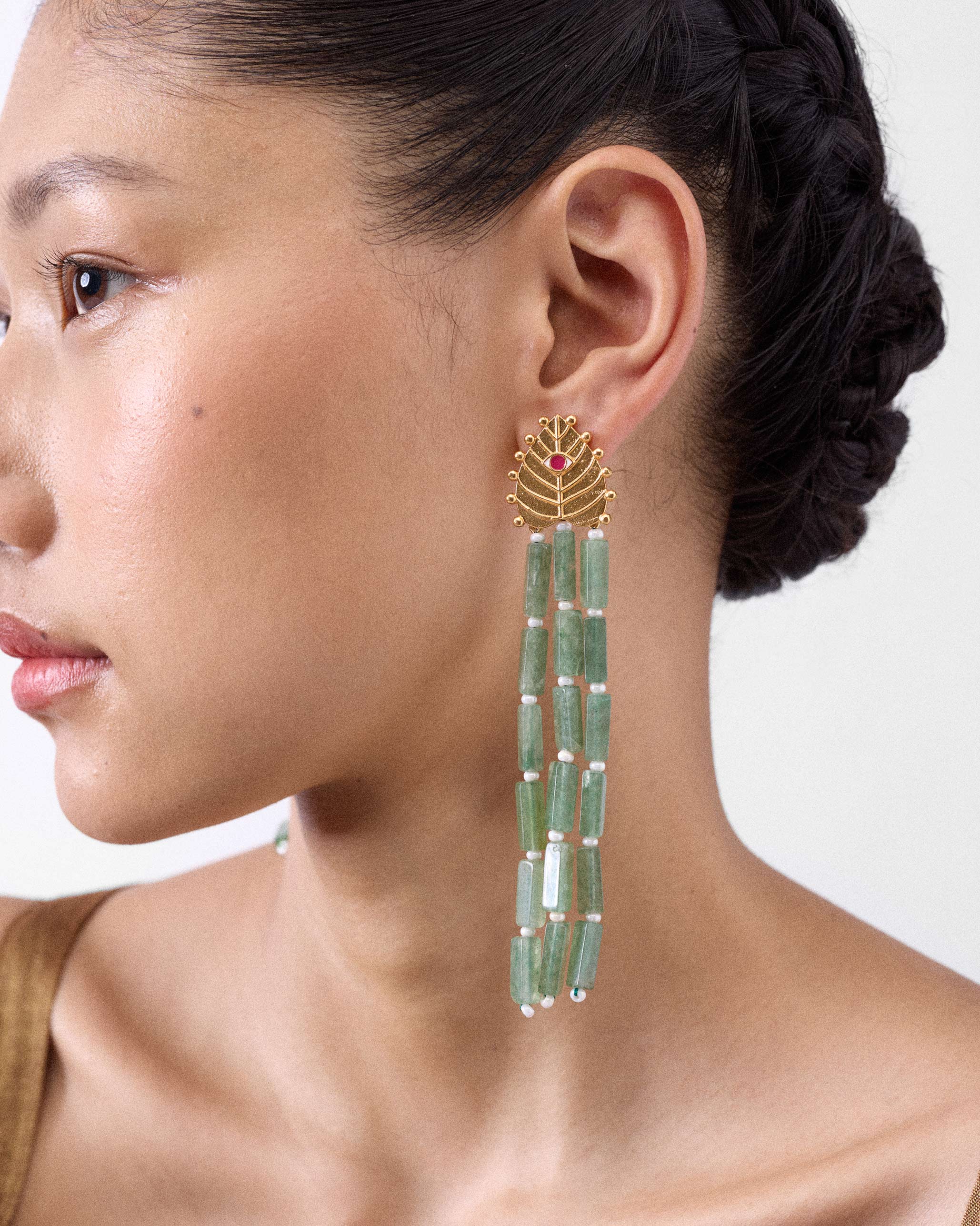 Playful and vibrant, the Paan Patta Danglers are inspired by the iconic motifs of the paan leaf and diamond, loosely drawing from the imagery of playing cards.