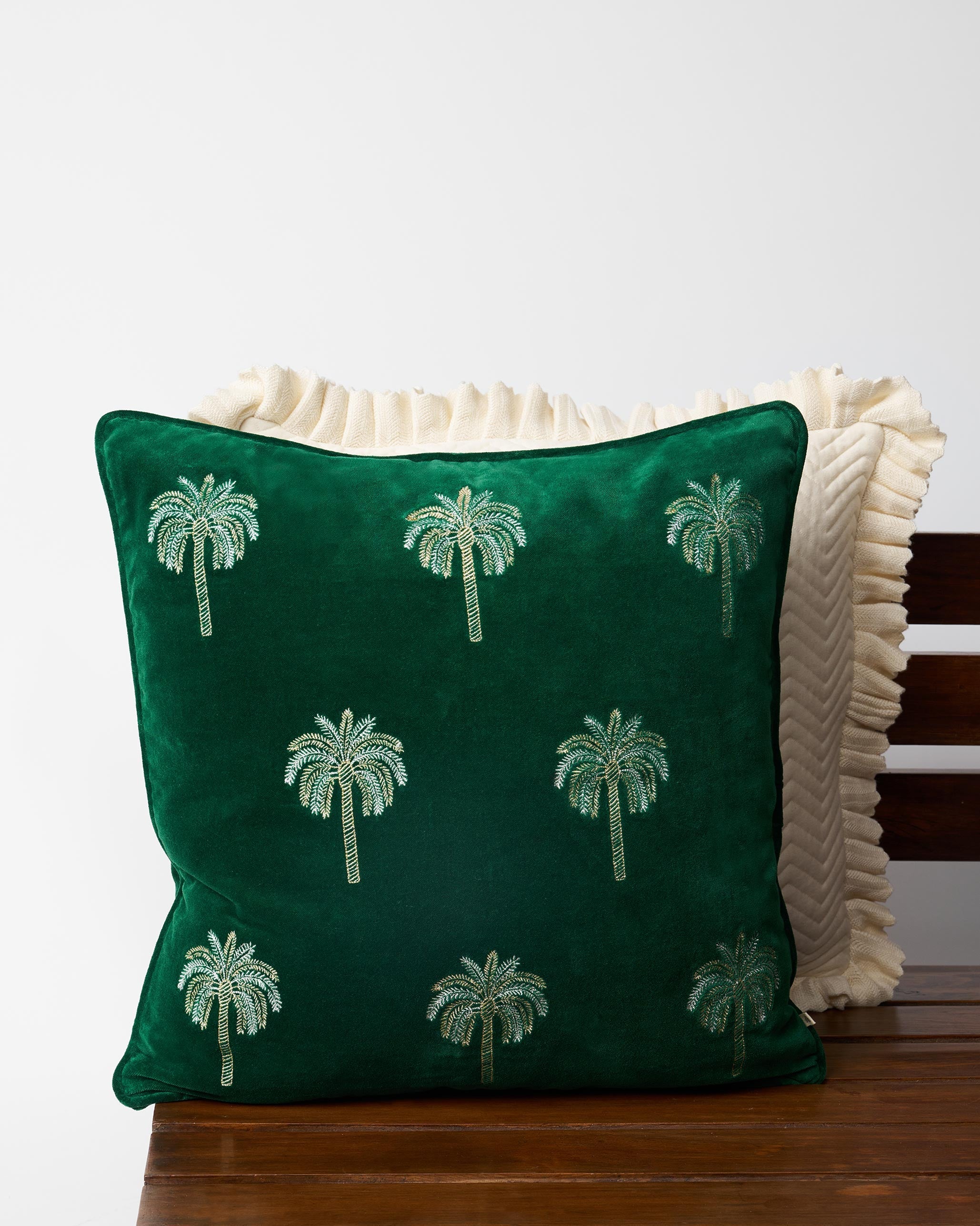 Add a touch of understated luxury to your living space with the Palm Shimmer Cushion Cover. The cushion features intricate embroidery inspired by the graceful silhouettes of palm fronds,creating a subtle shimmer that catches the light beautifully.