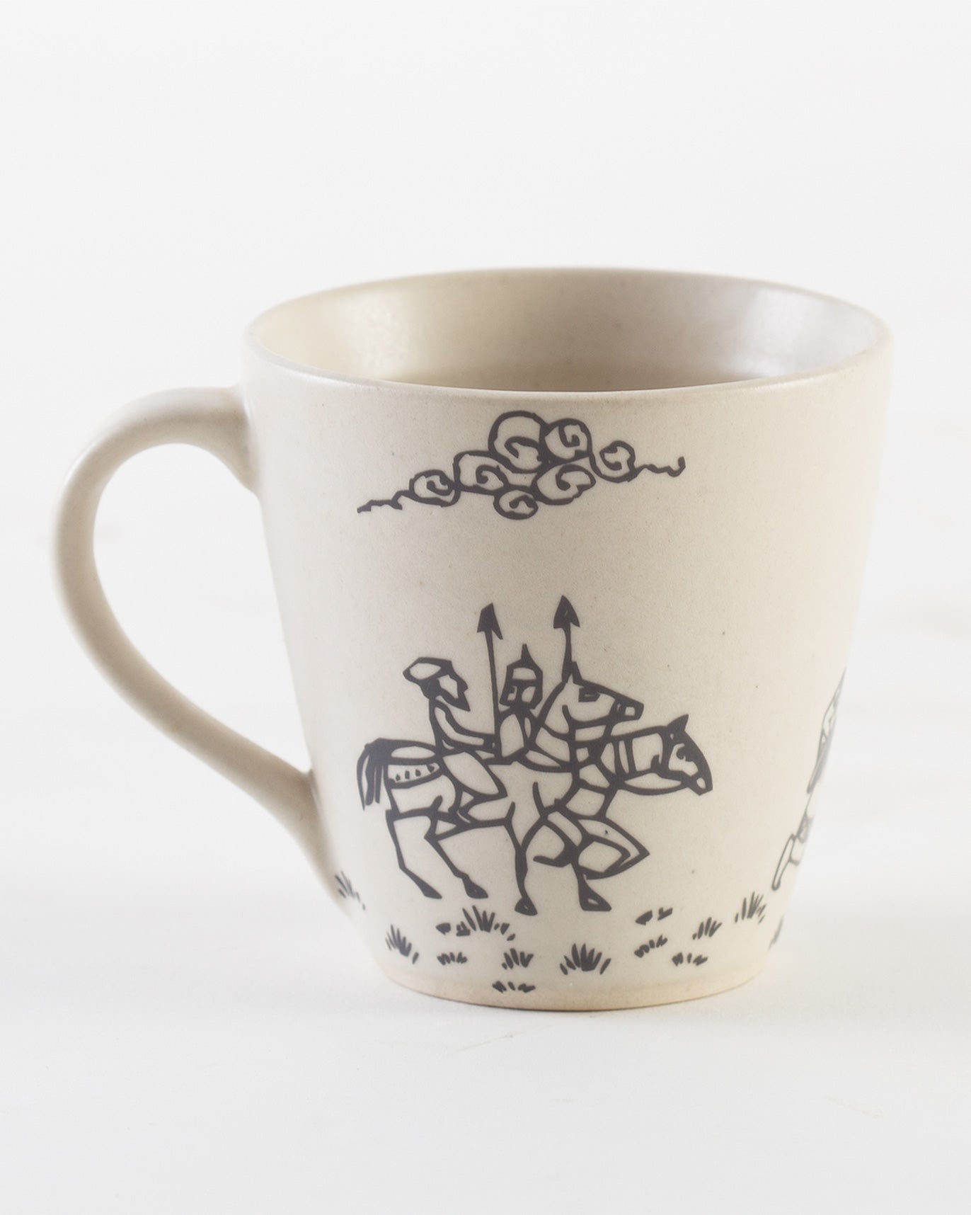 Inspired by the historic forts of South India, our stoneware Pazhani Fort Mug comes with an illustrative charcoal on ivory print, and a surprise motif on the interior