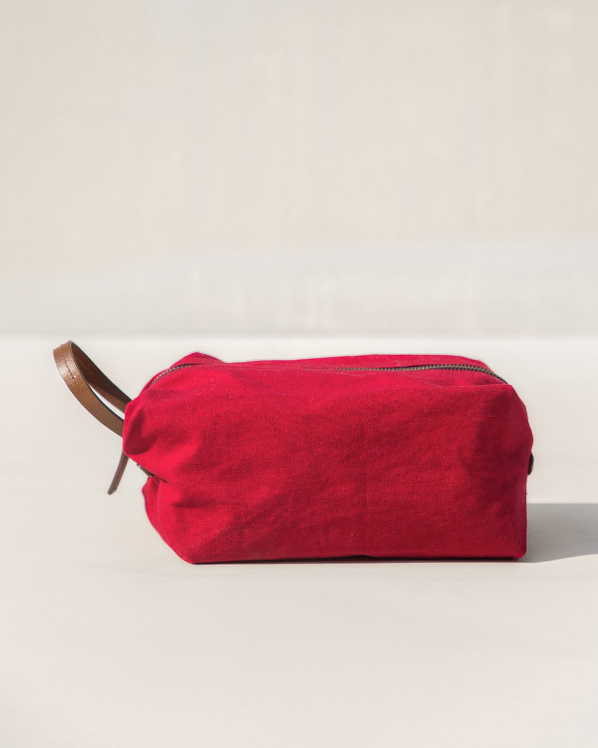 A first of its kind, this waterproof lined envelope toilet kit comes in bright ruby canvas, has leather trims and packs in a punch with a roomy interior for all your little restroom essentails.