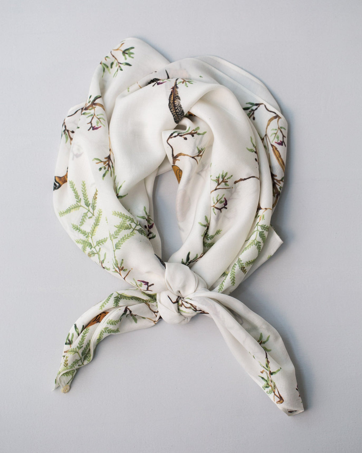 Featuring a charming print that captures the essence of Sher Bagh, Ranthambore, this scarf is dotted with the region's local flora and fauna - the tiger, hoopoe birds, cranes, and the sangri tree