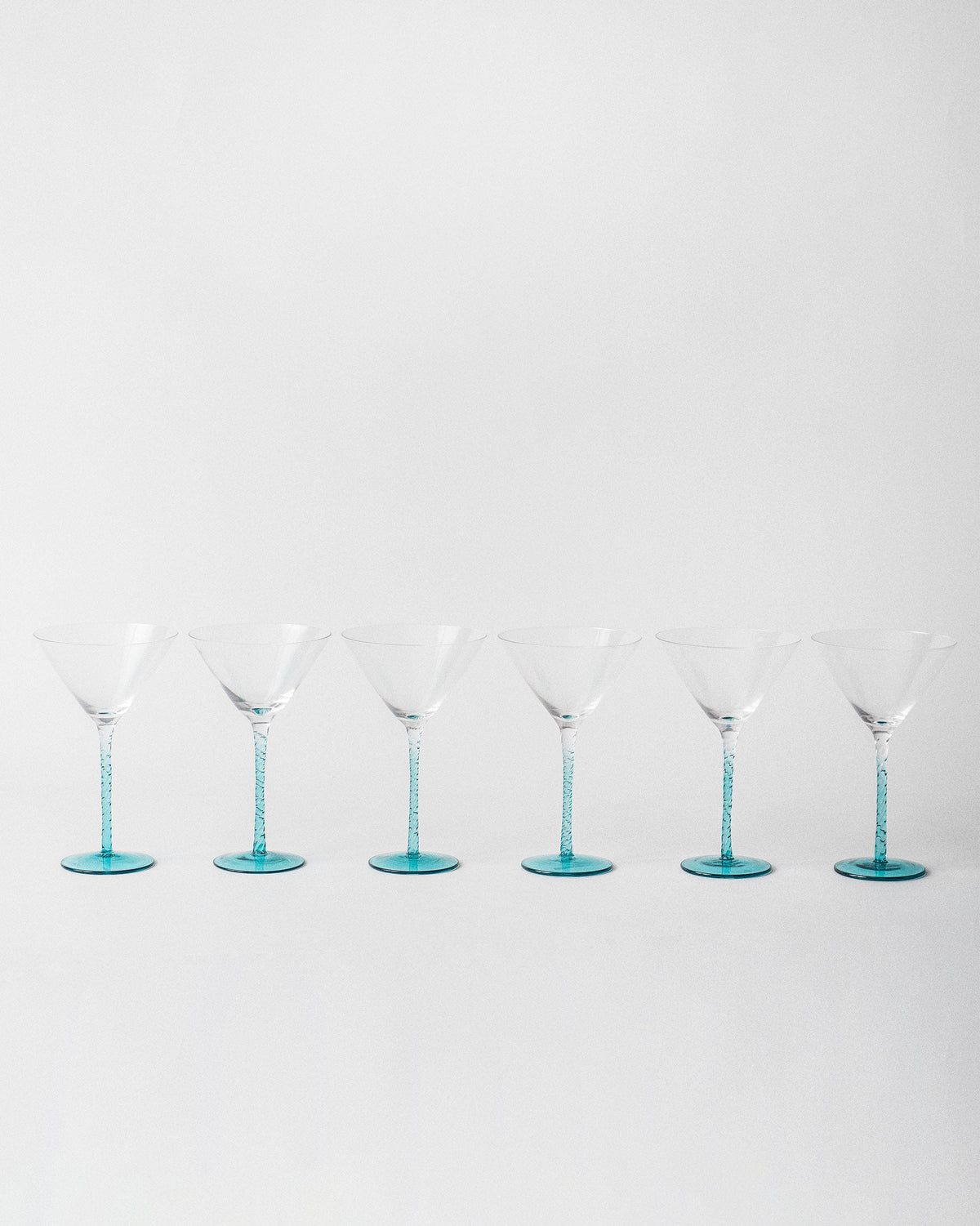 • The Solis Cocktail Glasses are a must-have for those moments when you want to appreciate the finer things. The clean design and teal stem and base makes this set of six ideal for entertaining.