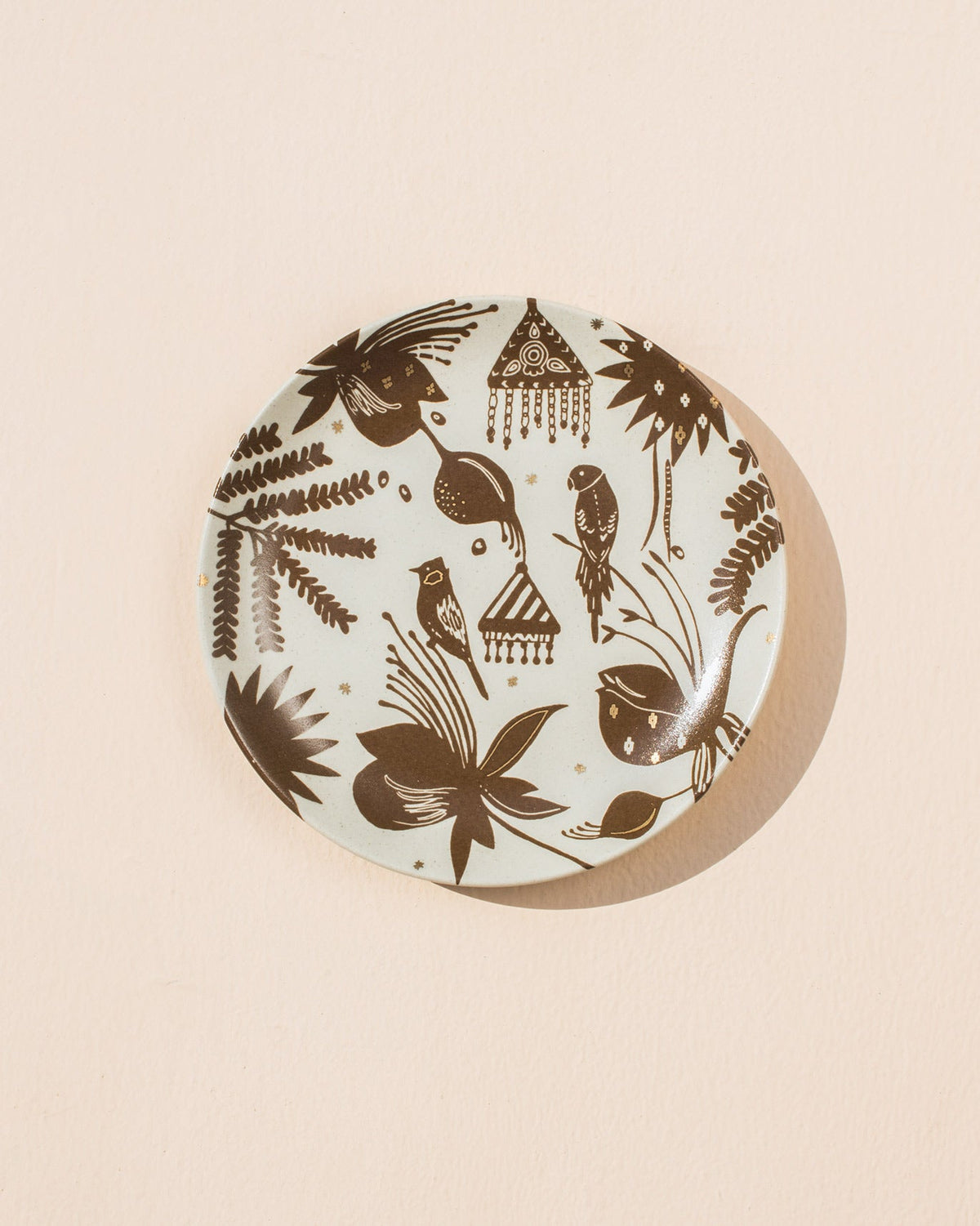 Inspired by the ever-changing landscape witnessed by the Banjaras on their constant journey, this quarter plate is peppered with flora and fauna motifs