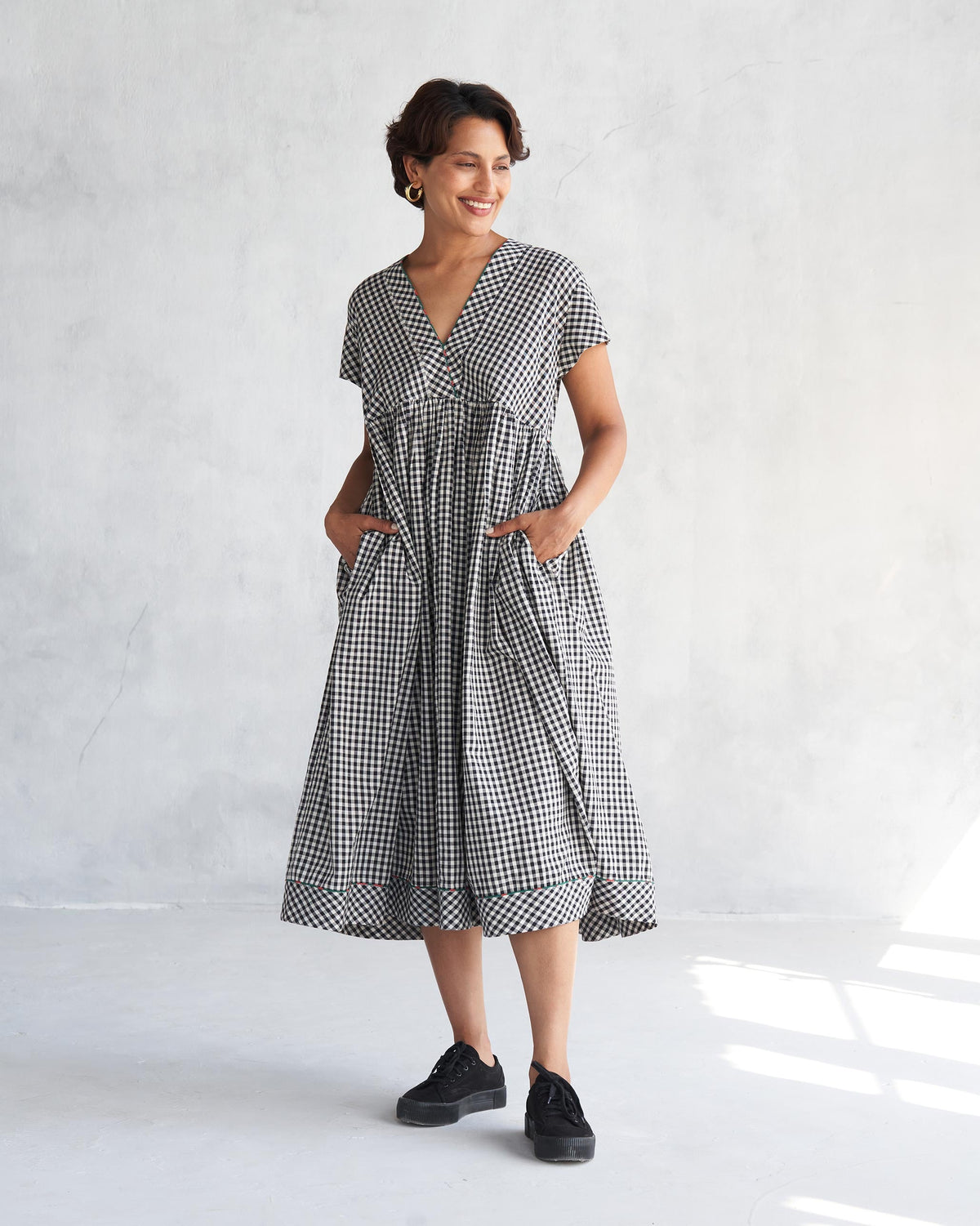 {"id":7585146110132,"title":"V Neck Gathered Dress - Black \u0026 Ivory","handle":"v-neck-gathered-dress-black-ivory","description":"\u003cul\u003e\n\u003cli\u003e Channel easy-going vibes with this V-neck dress, wrapped in a loose fit silhouette that's both comfortable and undeniably chic.\n\u003c\/li\u003e\n\u003cli\u003e Delicately crafted with piping detailing at the back waist seam and hem adorned with geometric heart embroidery.\n\u003c\/li\u003e\n\u003cli\u003e Features small black and ivory checks for a timeless look.\u003c\/li\u003e\n\u003c\/ul\u003e","published_at":"2024-04-29T05:52:01+05:30","created_at":"2024-04-09T01:15:38+05:30","vendor":"Nicobar","type":"Women Dresses","tags":["apparel_product","Campaign_Travel edit","campaign_vacationlooks","Campaign_zanzibar10apr24","COLLECTION_ EOSS","COLLECTION_EOSS25","COLLECTION_SS24ZANZIBAR","eoss_just_added","Filtercategory_Women","Filterclass_Dress","Filterlength_Long","Filteroccasion_Brunches","Filteroccasion_Casual","Filterpattern_Checks \u0026 Stripes","Filtersubcategory_Dresses \u0026 Jumpsuits","Filtersubclass_Dress","Gender_Female","Material Group_Cotton","MATERIAL_100% Cotton","oldgstprice_6000","pdpcollection_Zanzibar","Product_Variant","sale_flashsale","showsimilarproductfirst","Size_Guide_women-dresses","Topwear_Loose","v-neck-gathered-dress-black-ivoryNBI032666"],"price":9000,"price_min":9000,"price_max":9000,"available":false,"price_varies":false,"compare_at_price":null,"compare_at_price_min":0,"compare_at_price_max":0,"compare_at_price_varies":false,"variants":[{"id":42896080765108,"title":"Black \/ S-M","option1":"Black","option2":"S-M","option3":null,"sku":"NBI032666","requires_shipping":true,"taxable":true,"featured_image":null,"available":false,"name":"V Neck Gathered Dress - Black \u0026 Ivory - Black \/ S-M","public_title":"Black \/ S-M","options":["Black","S-M"],"price":9000,"weight":0,"compare_at_price":null,"inventory_management":"shopify","barcode":null,"requires_selling_plan":false,"selling_plan_allocations":[],"quantity_rule":{"min":1,"max":null,"increment":1}},{"id":42896080797876,"title":"Black \/ L-XL","option1":"Black","option2":"L-XL","option3":null,"sku":"NBI032667","requires_shipping":true,"taxable":true,"featured_image":null,"available":false,"name":"V Neck Gathered Dress - Black \u0026 Ivory - Black \/ L-XL","public_title":"Black \/ L-XL","options":["Black","L-XL"],"price":9000,"weight":0,"compare_at_price":null,"inventory_management":"shopify","barcode":null,"requires_selling_plan":false,"selling_plan_allocations":[],"quantity_rule":{"min":1,"max":null,"increment":1}},{"id":42896080830644,"title":"Black \/ 2XL-3XL","option1":"Black","option2":"2XL-3XL","option3":null,"sku":"NBI032668","requires_shipping":true,"taxable":true,"featured_image":null,"available":false,"name":"V Neck Gathered Dress - Black \u0026 Ivory - Black \/ 2XL-3XL","public_title":"Black \/ 2XL-3XL","options":["Black","2XL-3XL"],"price":9000,"weight":0,"compare_at_price":null,"inventory_management":"shopify","barcode":null,"requires_selling_plan":false,"selling_plan_allocations":[],"quantity_rule":{"min":1,"max":null,"increment":1}}],"images":["\/\/global.nicobar.com\/cdn\/shop\/files\/NBI032666_1.jpg?v=1737478598","\/\/global.nicobar.com\/cdn\/shop\/files\/NBI032666_2.jpg?v=1737478598","\/\/global.nicobar.com\/cdn\/shop\/files\/NBI032666_3.jpg?v=1737478598","\/\/global.nicobar.com\/cdn\/shop\/files\/NBI032666_4.jpg?v=1737478598","\/\/global.nicobar.com\/cdn\/shop\/files\/NBI032666_5.jpg?v=1737478598","\/\/global.nicobar.com\/cdn\/shop\/files\/NBI032666_6.jpg?v=1737478598","\/\/global.nicobar.com\/cdn\/shop\/files\/NBI032666_7.jpg?v=1737478598"],"featured_image":"\/\/global.nicobar.com\/cdn\/shop\/files\/NBI032666_1.jpg?v=1737478598","options":["Color","Size"],"media":[{"alt":null,"id":31172304142516,"position":1,"preview_image":{"aspect_ratio":0.8,"height":2574,"width":2058,"src":"\/\/global.nicobar.com\/cdn\/shop\/files\/NBI032666_1.jpg?v=1737478598"},"aspect_ratio":0.8,"height":2574,"media_type":"image","src":"\/\/global.nicobar.com\/cdn\/shop\/files\/NBI032666_1.jpg?v=1737478598","width":2058},{"alt":null,"id":31172304175284,"position":2,"preview_image":{"aspect_ratio":0.8,"height":2574,"width":2058,"src":"\/\/global.nicobar.com\/cdn\/shop\/files\/NBI032666_2.jpg?v=1737478598"},"aspect_ratio":0.8,"height":2574,"media_type":"image","src":"\/\/global.nicobar.com\/cdn\/shop\/files\/NBI032666_2.jpg?v=1737478598","width":2058},{"alt":null,"id":31172304208052,"position":3,"preview_image":{"aspect_ratio":0.8,"height":2574,"width":2058,"src":"\/\/global.nicobar.com\/cdn\/shop\/files\/NBI032666_3.jpg?v=1737478598"},"aspect_ratio":0.8,"height":2574,"media_type":"image","src":"\/\/global.nicobar.com\/cdn\/shop\/files\/NBI032666_3.jpg?v=1737478598","width":2058},{"alt":null,"id":31172304240820,"position":4,"preview_image":{"aspect_ratio":0.8,"height":2574,"width":2058,"src":"\/\/global.nicobar.com\/cdn\/shop\/files\/NBI032666_4.jpg?v=1737478598"},"aspect_ratio":0.8,"height":2574,"media_type":"image","src":"\/\/global.nicobar.com\/cdn\/shop\/files\/NBI032666_4.jpg?v=1737478598","width":2058},{"alt":null,"id":31172304273588,"position":5,"preview_image":{"aspect_ratio":0.8,"height":2574,"width":2058,"src":"\/\/global.nicobar.com\/cdn\/shop\/files\/NBI032666_5.jpg?v=1737478598"},"aspect_ratio":0.8,"height":2574,"media_type":"image","src":"\/\/global.nicobar.com\/cdn\/shop\/files\/NBI032666_5.jpg?v=1737478598","width":2058},{"alt":null,"id":31172304306356,"position":6,"preview_image":{"aspect_ratio":0.8,"height":2574,"width":2058,"src":"\/\/global.nicobar.com\/cdn\/shop\/files\/NBI032666_6.jpg?v=1737478598"},"aspect_ratio":0.8,"height":2574,"media_type":"image","src":"\/\/global.nicobar.com\/cdn\/shop\/files\/NBI032666_6.jpg?v=1737478598","width":2058},{"alt":null,"id":31172304339124,"position":7,"preview_image":{"aspect_ratio":0.8,"height":2574,"width":2058,"src":"\/\/global.nicobar.com\/cdn\/shop\/files\/NBI032666_7.jpg?v=1737478598"},"aspe